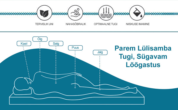 Täiustatud mitmetsooniline ehitus vähendab puusade, õlgade, selja ja liigeste pinget, parandades öist mugavust