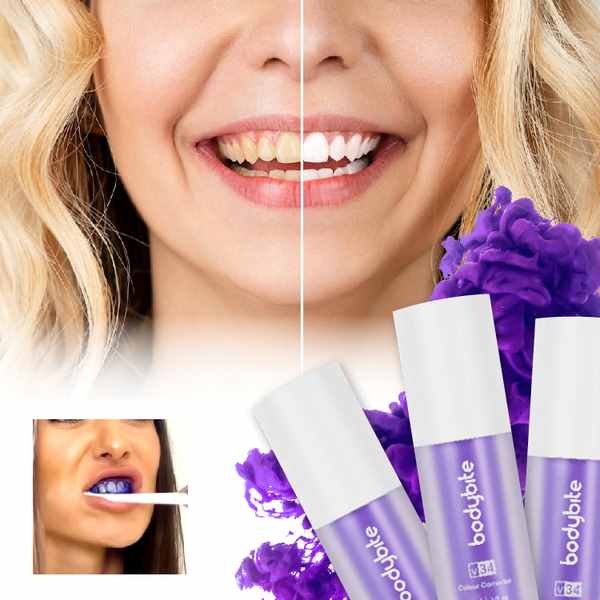 V34 kasutab värvikorrektsiooni tehnoloogiat, et nähtavalt parandada teie naeratuse heledust. Kuna lilla on kollase vastandvärv, aitab valem tasakaalustada soovimatuid kollaseid toone ühtlasema ja säravama välimuse saavutamiseks. Tulemuseks on koheselt värskema välimusega naeratus — ilma karmide protseduuride või keeruliste sammudeta.